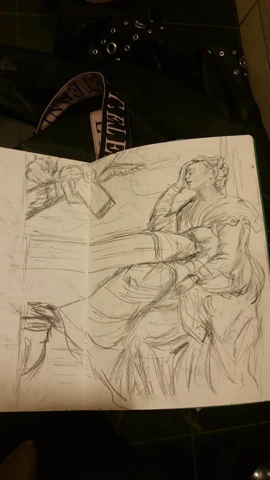 I also find that as a somewhat extroverted artistic type, I’ve always enjoyed sketching people as it provides the perfect opportunity to tune out, reflect and observe others while simultaneously being around them, as occasionally I just need a balance between being around people 24/7 and total solitude. But another obvious benefit of being in a group with other artists is that although the process of drawing and painting is itself a solo activity, there is the valuable aspect of peer-learning in that you can see and learn from others’ techniques, processes and practices. It’s also nice just getting to know the rolling group of eclectic regulars and visitors/newbies from around the world who join the cafe- or pub-based life-drawing sessions, as well as those who meet at the National Gallery — if you are an artist or artistically inclined, it is a wonderful way to add to the richness of visiting London as one of the world’s leading cultural cities.