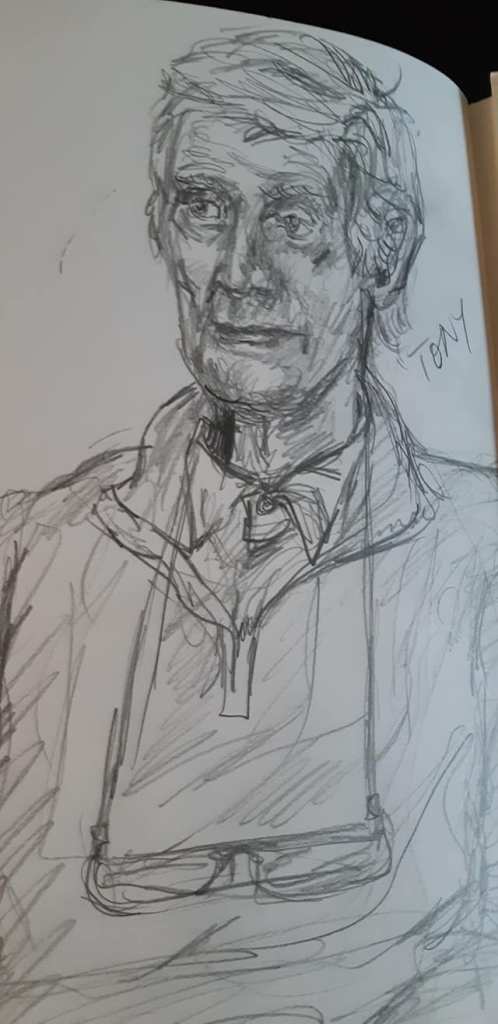 There are also several free ‘Portraits in the Cafe’ sessions involving drawing each other in quick 5- to 15-minute poses. In non-lockdown times, these sessions are usually held at the Roman Road site of the Muxima Cafe in Bow – a Time Out ‘Best Cafe in Bow’ for two years running. It’s a friendly, relaxed and quietly bohemian venue, perfect for an evening of social portrait sketching – if a little out of the way for me (however, I usually head into London to dance at SOS on a Sunday night, so the timing – from 6–8pm, is actually perfect). Of course these are also now being done online, again at the same time as the Muxima sessions. Below are a few of these 5- to 15-minute portrait sketches from the live Cafe sessions, as well as some of our more recent online sessions.