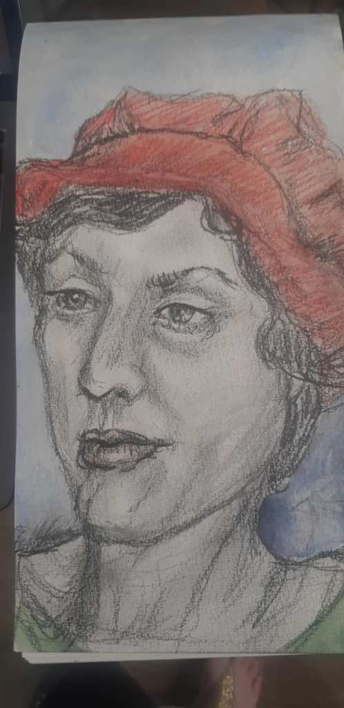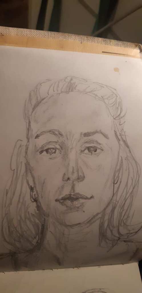 But now that we can join these paid sessions online from home, it is so much easier to mix paints to use in our sketches – I’ve only just started experimenting with adding watercolour to my charcoal or pencil sketches, or even working directly from my paintbox, but this is an area I do wish to grow in (so far, I have mostly used pen, pastels, charcoals, graphite pencils, etc, but now in addition to using watercolour, I would like to try using a brush with ink, as I have observed others using in portraits and see this can be quite effective and expressive).