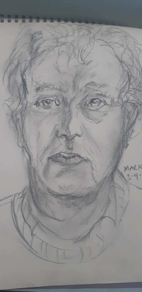 Mark Fennell, self-portrait; a class in session, with my own efforts below