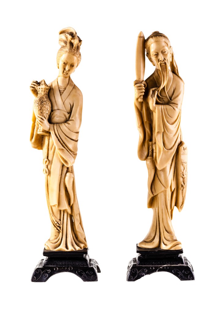 A pair of elegant Japanese netsuke figurines carved from ivory (Credit: Shutterstock)