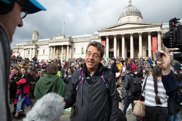 Guardian journalist George Monbiot outside the National Gallery, Trafalgar Square, during the Extinction Rebellion protest in October 2019 (Credit: Shutterstock)