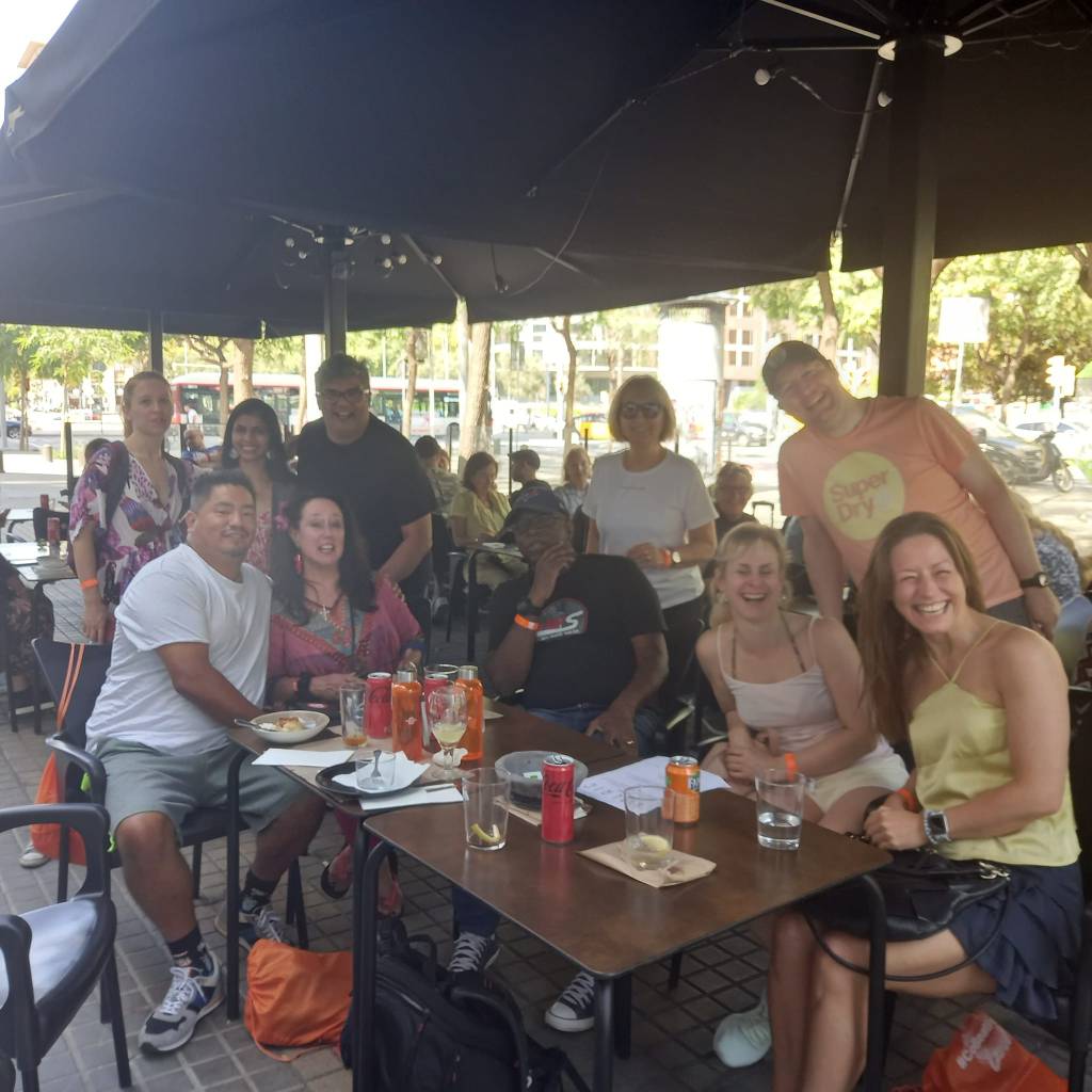 The actual event venue was a bar/restaurant around the corner, which had a covered outdoor cafe that made a convenient meeting place for many of our CoBeat familia in between/during the afternoon dance socials, a lively daily discussion and sharing spot where we could get to know each other better over food (the venue’s food service wasn’t always the fastest or best, but at least was inexpensive; thankfully, Barcelona is known for its exquisite tapas restaurants, which I was pleased to experience many of [see TripAdvisor and Forbes for recommendations of some of the best current restaurants]).