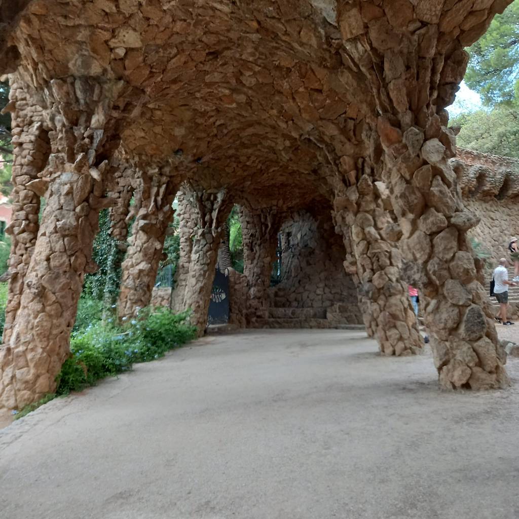 We then carried on to Parc Güell – a high, large (17-hectare) green space sited on Carmel Hill in the mountain range of Colisera, with unbeatable views over the sea and the Plain of Barcelona – which is now a UNESCO World Heritage Site.