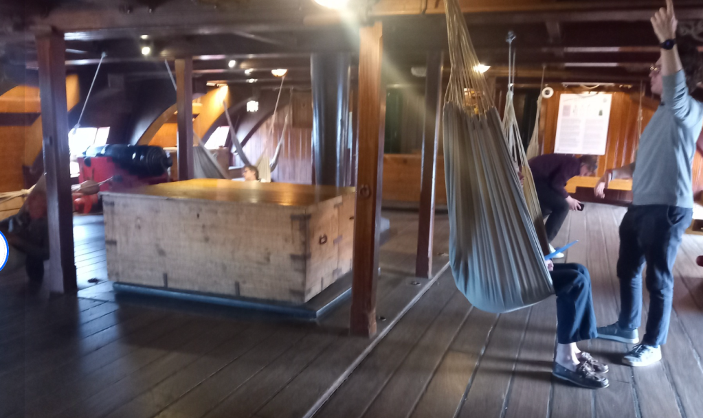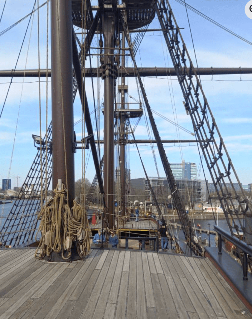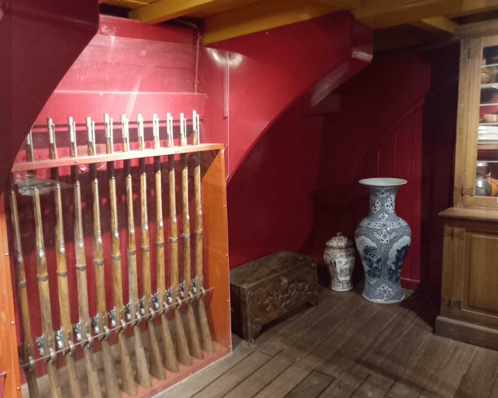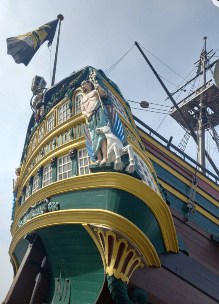 The only viable remnant of the VOC’s once-vast importance is the building’s imposing façade and courtyard, which centuries ago would have thronged with thousands of desperate recruits attempting to scale its walls, so great were their hopes of returning with riches beyond their wildest dreams. Sadly, the long sea voyage routinely killed roughly 45% of the crew on each ship (see pics below of a replica Dutch East Indiaman ship, the Amsterdam, at the city’s maritime museum, Het Scheepvaartmuseum – after years of writing about life onboard a merchantman, it was exciting to be on one!)
