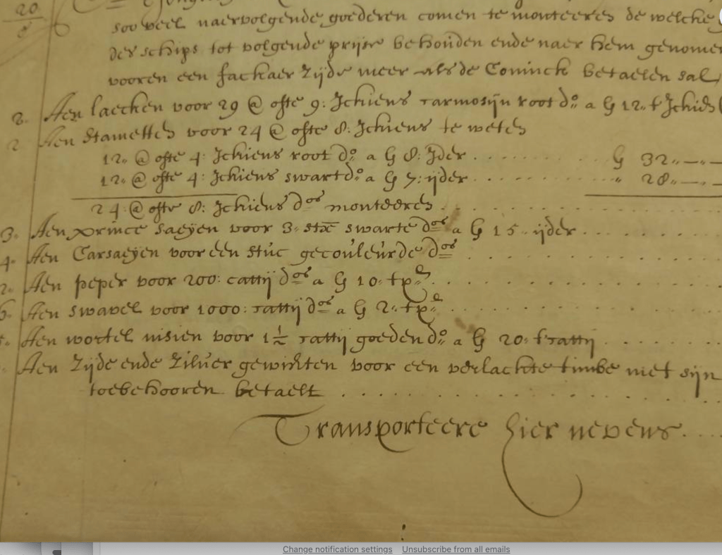 While on the first day they had told me I’d need to purchase a USP to be able to make scans of the documents onto my laptop and had also insisted on setting each ledger on a silk pillow, on the second they said I could use my smartphone to take pictures. It occurred to me I could use my camera with Google Translate to help decipher the handwritten script, which was also in an older version of Dutch. The results were so hysterical I laughed out loud – for example, one of the phrases it picked out was ‘Keep on trucking’ – clearly not an expression that would have been in vogue in 1638!