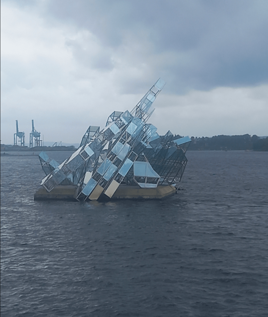 However, as we soon learned from our local guide the next day (Tuesday) after arriving late afternoon on Monday, settling into our comfortable 4* hotel, The Clarion Hub, and going for a meal near the train station (a tasty though rather basic meal of chicken, salad and vegetables, followed by a creamy fruit pudding), although Norway continues to mine and produce fossil fuels for sale abroad, it now runs almost entirely on renewable energy (specifically hydroelectric). Indeed, there were electric cars, bikes and plenty of wind turbines everywhere. I found it highly gratifying that at least my hard work on that publication had contributed in some small way to the country’s admirably sustainable commitments. Norway is much further ahead than the UK in net-zero commitments, and with good reason: its spectacularly beautiful nature and traditional industries, heavily reliant on the sea and fishing, are highly vulnerable to climate change.