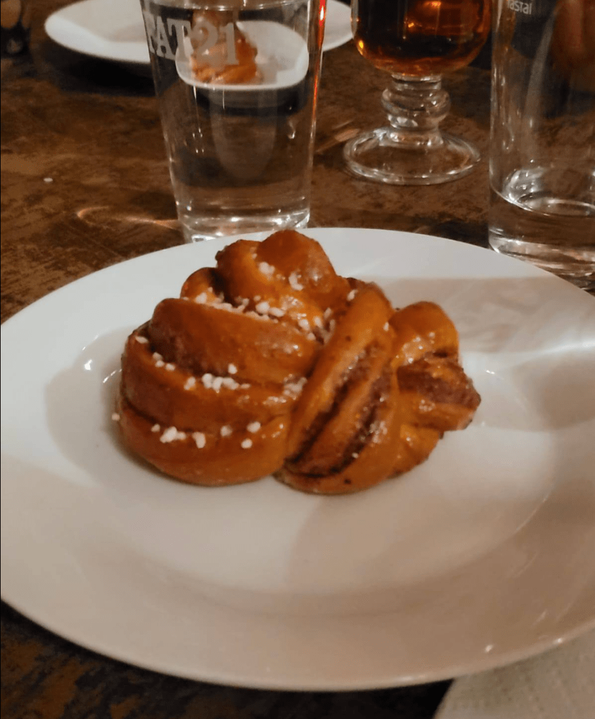 I was grateful to relax on this gentle cruise and save my energy for two planned dance classes later that night with my Swedish dance teacher friends Johanna Jo (tango) and Leonardo Lazcardo (mambo shines) of JL Dance, but before that we reconvened in Gamla Stan to enjoy a traditional Swedish fika – afternoon coffee, pastry (a giant cinnamon bun) and gossip. I didn’t really have time to grab any dinner before I had to leave for my classes but felt stuffed enough on the GF alternative cake (made from Daim chocolate) I was served to keep going for the three-hour classes – both were fabulous and a lot of fun, also giving me the opportunity to experience Stockholm’s dance scene like a local as well as using its metro system and catching up with friends I hadn’t seen since 2018.