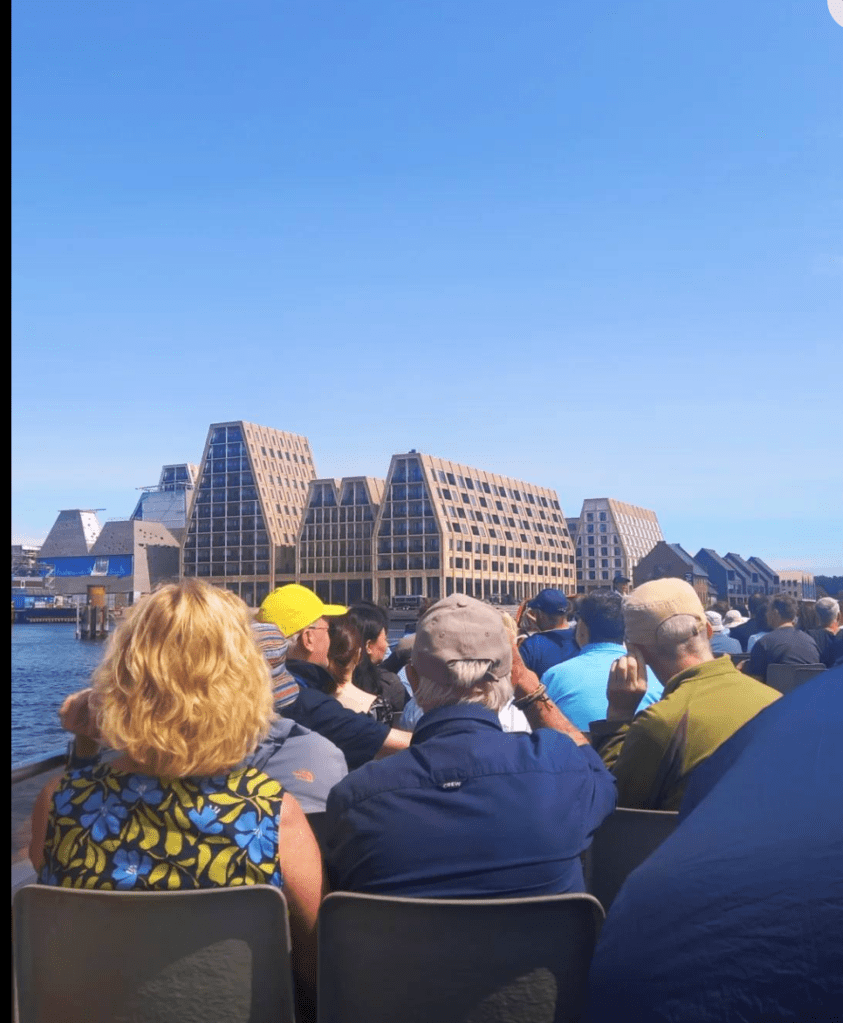 Scandinavia was in fact the last place on my original bucket list*, partially because I had never been able to choose between Norway, Sweden and Denmark – hence the appeal of a tour encompassing the supposed ‘best of’ each country’s capital. Tbh, much as I wish to see the Northern Lights and snow-covered fjords, I am not a fan of cold weather; considering I had already missed seeing the aurora on a previous trip to Iceland, my expectations of seeing them were low. I am also not a fan of fossil-fuelled travel, so even though this trip required flights to/from London, most of it was eco-friendly. Besides that, I had heard Scandinavia was prohibitively expensive – even more so than Japan – so my husband certainly would never have gone! But as I had promised my dear godmother Yogi (alas now deceased) I would visit Copenhagen for her someday, I wanted to do that while hopefully seeing fjords, Swedish lakes and forests in a sustainable and hopefully less-cold way (it was in fact only a little cooler than London – a mix of sun, cloud and rain, but sometimes even hot – so I hardly needed all the wintry jumpers, hats, scarves and wellies I packed!)